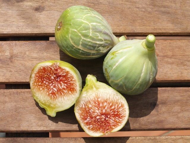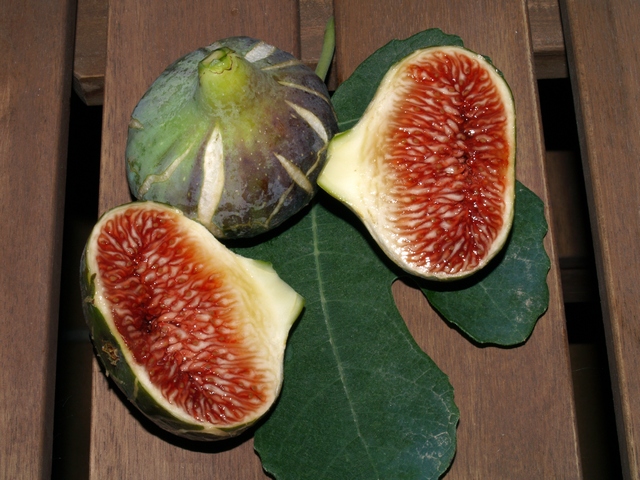 Carn suau, molt ensucrada i sucosa, excel·lent qualitat gustativa, compacta i de color vermell fosc. Les figues són de maduració tardana cap a finals d’agost.