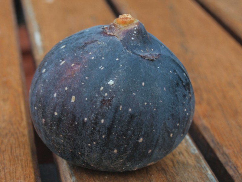 La figa és de molt bona qualitat amb la carn d’un vermell encès, dolça i gustosa. La seva pell és fina però molt dura d'un color negra blavós amb unes característiques petites taques blanques homogèniament ben repartides.